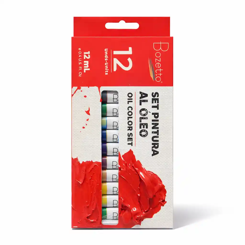 Set de pintura al óleo Contiene los siguientes colores: Blanco de titanio Amarillo limón Amarillo ocre Rojo escarlata Rojo carmesí Verde viridiano Azul phthalo Azul ultramar Verde vejiga Sombra tostada Siena tostada Negro bujía