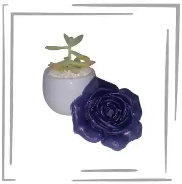 Set Incluye 2 Unidades: Vela Perfumada en Forma de Rosa 1 Und + Una Planta Suculenta Variada 5 cm Alto 5 cm Ancho 1 Und. Incluye Bolsa de Regalo
