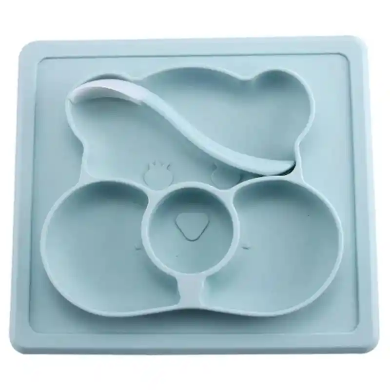 LINDO DISEÑADO PARA EL BEBÉ: El mantel individual de silicona con 4 secciones de alimentos diseñado para bebés en crecimiento, niños pequeños y niños. Los colores brillantes y alegres y la linda forma del oso son amados por niños de todas las edades, hacen que la hora de comer sea divertida Diseñado para la seguridad: 100 % material de silicona de calidad alimentaria, libre de PPA, BPA y PVC. El bebé puede estar seguro de usar y comer felizmente, los padres no se preocupan por ningún impacto negativo. Este es nuestro esfuerzo más serio para brindarle productos seguros y protegidos. No más líos: manteles individuales de silicona para bebés antideslizantes, fuertes succiones de forma segura a cualquier superficie dura y plana, se adapta a la mayoría de bandejas de sillas altas que hacen que los niños no tiren cuencos y platos con comida en el suelo. ALIMENTACIÓN MÁS FÁCIL: el borde sobresaliente bloquea efectivamente el flujo de alimentos y los desbordamientos, los alimentos están completamente presentes en el plato. El tamaño de los arreglos ordenados de la cuadrícula, puede poner algunos alimentos diferentes más nutritivos, carne y verduras con FÁCIL DE LIMPIAR Y LLEVAR: solo con agua tibia y jabón o colóquelo en el lavavajillas. El mantel de silicona resiste las manchas y no absorbe sabores. Resistente a altas temperaturas. Apto para lavavajillas y microondas. También se puede utilizar como plato de frutas.