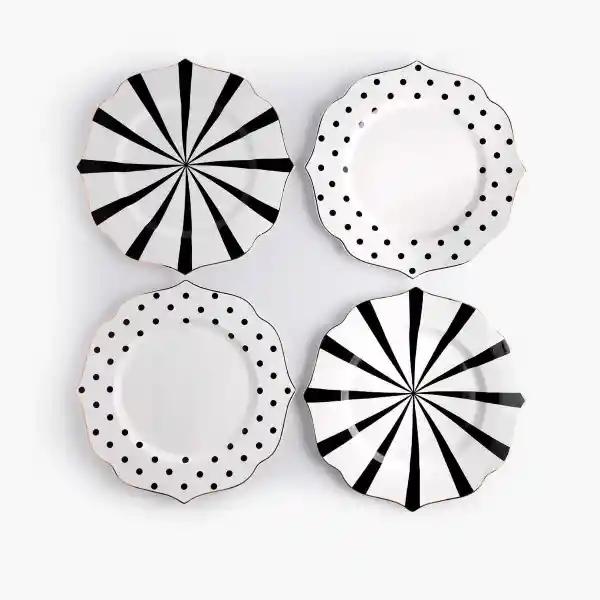 Set Contiene 4 Unidades. Sirve Tus Obras Maestras Culinarias Con Una Elegancia Inconfundible Con el Plato Principal Contraste. Este Set de Cuatro Piezas Fabricado Con la Avanzada Porcelana New Bone China es la Base Perfecta Para el Servicio Diario y Las Cenas Formales. El Diseño Audaz en Blanco y Negro Aporta Una Estética de Lujo Minimalista Que Realza Cada Platillo.