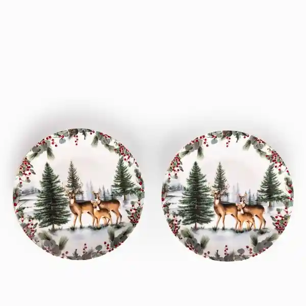 Set Contiene 2 Unidades. Set Por Dos Platos Principales en la Vajilla Navidad Silvestre Forest en Porcelana Tiene la Magia Envolvente de Los Renos Inspira Bellas Creaciones de Follaje y Patrones Naturales. Este Plato es Perfecto Para Servir Comidas Principales al Desayuno el Almuerzo y la Comida.