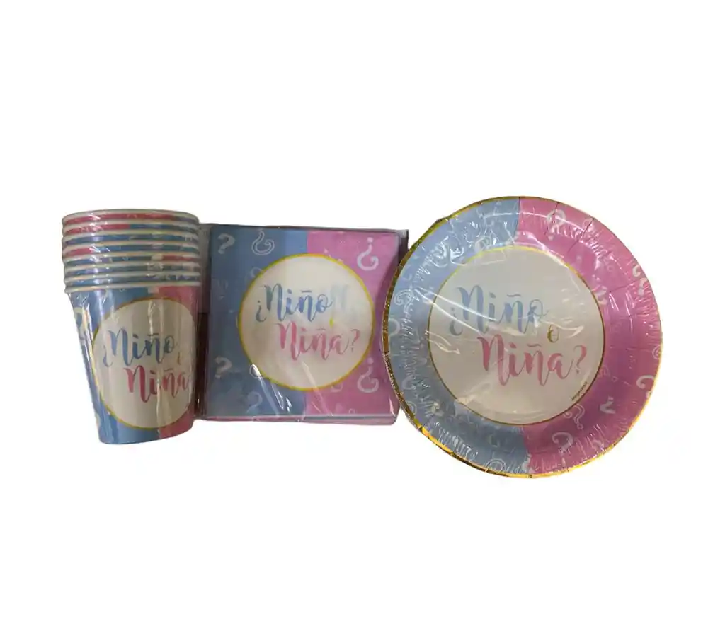 Completo set de vajilla desechable metalizada que incluye platos, vasos y servilletas para 8 personas, ideal para baby showers y celebraciones de revelación de género. Su diseño elegante “Niño o Niña” de la marca Sempertex aporta un toque especial y sofisticado a tu mesa de dulces o comedor. Práctico, decorativo y perfecto para crear un ambiente inolvidable.