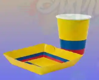 Set Platos Y Vasos Tricolor Diseño De La Bandera De Colombia x 10 Und