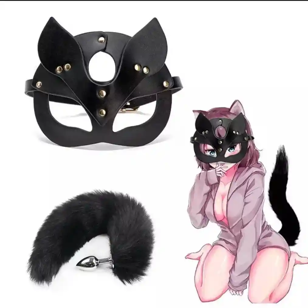 Plug Anal con Máscara Plug anal metálico con cola y máscara Talla S Color negro Cosplay de zorro