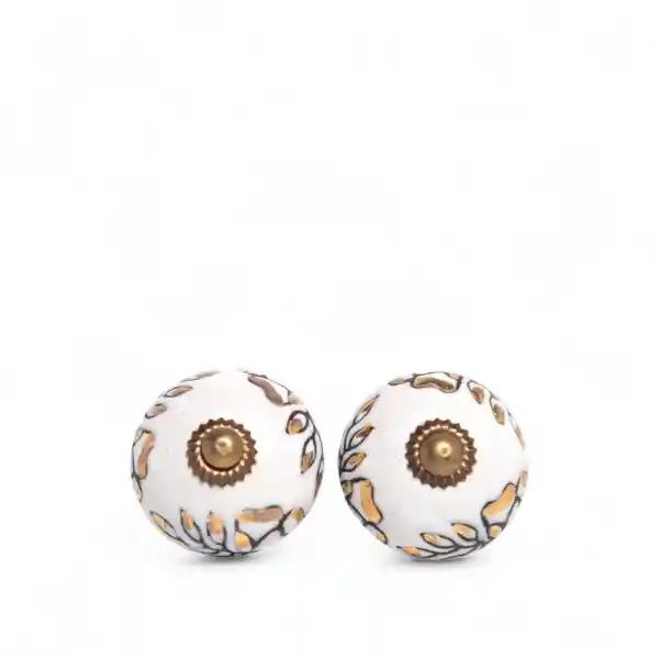Set Contiene 2 Unidades. Pomo Decorativo en Cerámica Con Detalles de Flor Dorado Personaliza Tus Espacios Dale un Giro a la Decoración Con Pequeños Detalles.