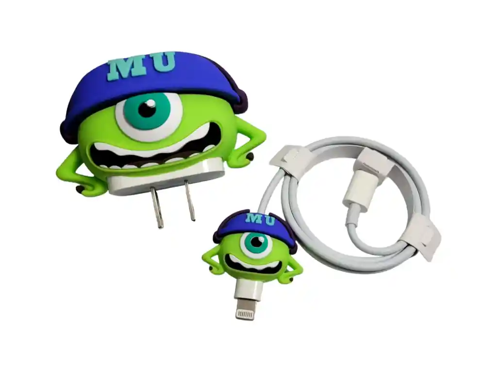 Set de Protectores para cargador y cable iPhone 20W Monster U Mike Wazowski Material: Silicona Características destacadas: >>Personaliza tu cargador con tu diseño favorito >>Material silicona antideslizante. >>Protege tu cargador y cable de daños. Incluye: 2 piezas: Protector adaptador y protector de conector cable. FOTOS DE REFERENCIA, NO INCLUYE CARGADOR. Producto garantizado Somos Andicell Soluciones