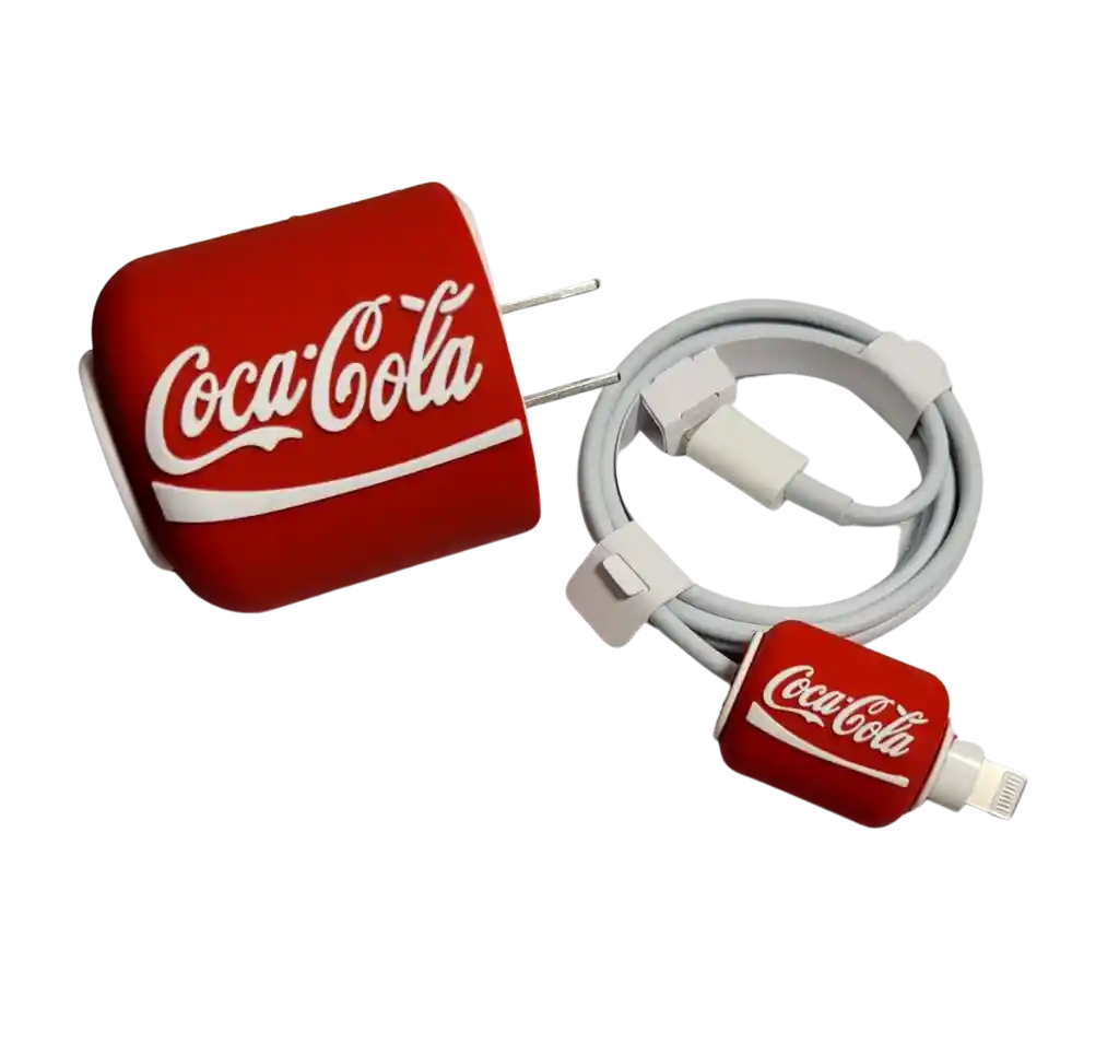 Set de Protectores para cargador y cable iPhone 20W Material: Silicona Diseño: Coca Cola Características destacadas: >>Personaliza tu cargador con tu diseño favorito >>Material silicona antideslizante. >>Protege tu cargador y cable de daños. Incluye: 2 piezas: Protector adaptador y protector de conector cable. FOTOS DE REFERENCIA, NO INCLUYE CARGADOR. Producto garantizado Somos Andicell Soluciones