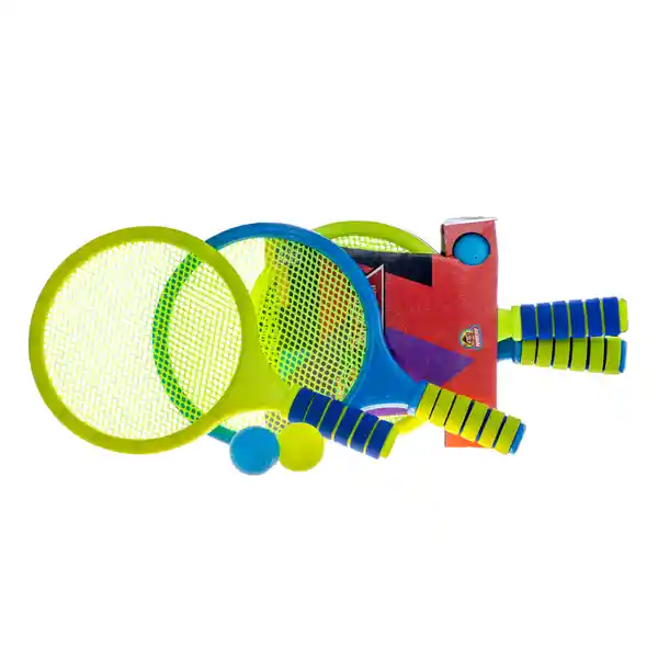 Set Contiene 2 Unidades Raquetas Plásticas (Azul y Verde) Raquetas Redondas Con Manija de Espuma. Agarre Suave Para Mayor Comodidad. Incluye 2 Bolas