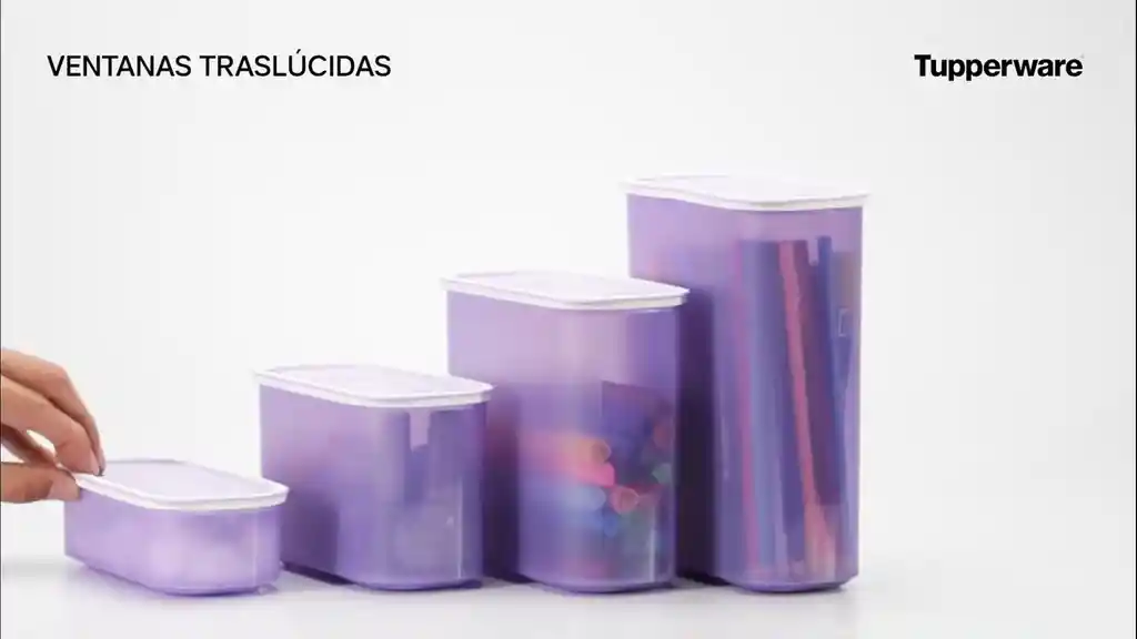 De la línea de Alacena: este Set es ideal para almacenar alimentos secos como galletas, granos, cereales, semillas, pastas y harinas entre otros, también líquidos porque son herméticos continene en el borde silicona; al ser traslúcidos te permiten ver fácilmente el contenido y la cantidad de alimento que queda para rellenarlo cuando sea necesario. Por su forma aprovecha espacios y altura de tu alacena. Producto plástico libre de BPA (Bisfenol A), Dile No a los plásticos de un solo uso. Medidas: No. 1 320 ml 8.3 x 16.5 x 5.2 de alto; No. 2 800 ml 8.3 x 16.5 x 10.2 de alto; No. 3. 1.25L 8.3 x 16.5 x 14.5 de alto; No. 4. 1.7L 8.3 x 16.5 x 14.5 de alto.