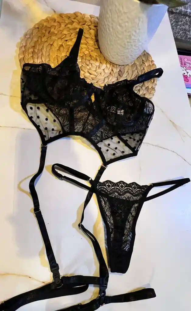 set completo con liguero, totalmente ajustable de talla 32c a 38b , se gradua en cintura, espalta, hombros y liga