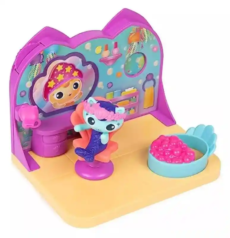 Set Sala De Spa Gabby's Dollhouse De Muñecas Con Figura Set Sala de Spa Gabby's Dollhouse de Muñecas con Figura para Niñas Sala de spa de baño de burbujas: dele a Mercat un chapuzón rápido en su bañera de burbujas antes de colocarla en la silla de spa giratoria, frente al espejo de tocador, luego gire la ruedecilla para disfrutar de un cambio de escenario Entrega de casas de muñecas y juguetes sorpresa: descubra 2 accesorios: una silla de spa giratoria y un lindo secador de pelo que Mercat puede sostener entonces, Desempaqueta la entrega de la casa de muñecas para encontrar un juguete sorpresa que pueda usar Funciona con la casa de muñecas de Gabby: este juego es perfecto para juegos de simulación divertidos y emocionantes. Úselo con la nave Gabby Cat Friend o úselo en el juego de casa de muñecas Gabby'S Purrfect (cada uno se vende por separado)Construye un mundo de casa de muñecas: con todo, desde habitaciones temáticas y muebles de casa de muñecas hasta figuras de juguete y juegos de juguete, crea un mundo de casa de muñecas para ayudar a los niños a desarrollar su imaginación a través del juego de simulación Recógelos todos: los juguetes para niños de la casa de muñecas Gabbys son excelentes juguetes y regalos preescolares para niños a los que les encanta jugar con muñecas y accesorios, Juguetes sorpresa, animales de peluche, rompecabezas y juegos de mesa Incluye: 1 habitación de casa de muñecas, 1 figura, 1 silla giratoria, 1 entrega de casa de muñecas, 1 accesorio