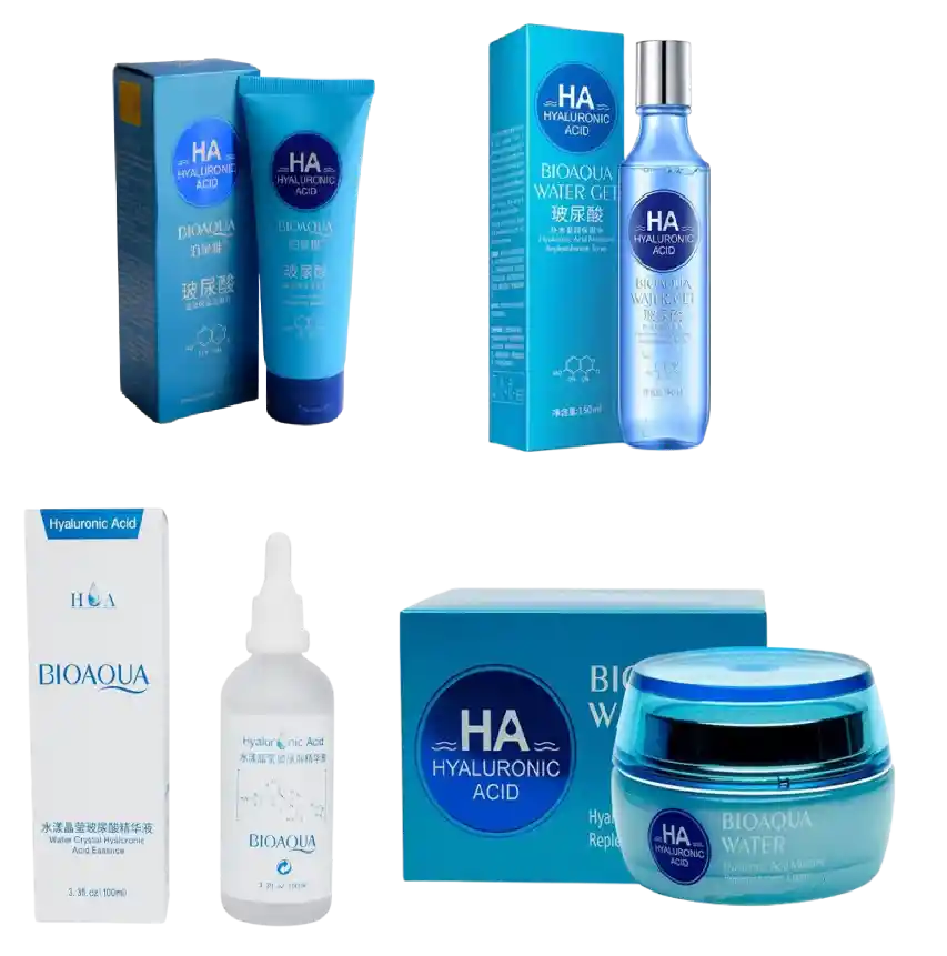 Por tu compra recibe: Set de Skincare Bioaqua Ácido Hialurónico (4 pasos) Incluye: Jabón Facial Bioaqua Ácido Hialurónico 100 g Tónico Facial Bioaqua Ácido Hialurónico 150 ml Sérum Facial Bioaqua Ácido Hialurónico 100 ml Crema Hidratante Bioaqua Ácido Hialurónico 50 g Transforma tu rutina diaria en un ritual de belleza con este completo set de cuidado facial. Formulado con ácido hialurónico, un poderoso activo hidratante, este kit limpia, hidrata, restaura y protege tu piel, dejándola suave, luminosa y llena de vida. BENEFICIOS DEL SET 1. Limpieza Profunda y Suave: El jabón elimina impurezas, exceso de grasa y residuos de maquillaje sin resecar tu piel. 2. Hidratación y Equilibrio: El tónico refresca, tonifica y prepara la piel para absorber mejor los nutrientes. 3. Reparación e Hidratación Intensa: El sérum penetra profundamente para restaurar la elasticidad, mejorar la textura y reducir la apariencia de líneas finas. 4, Nutrición y Protección Prolongada: La crema sella la hidratación, dejando tu piel suave, tersa y protegida durante todo el día. Resultados visibles: Piel más saludable, luminosa y radiante desde la primera aplicación. MODO DE USO – RUTINA 4 PASOS 1. Limpieza: Lava tu rostro con el Jabón Facial Bioaqua. 2. Tonificación: Aplica el Tónico para refrescar e hidratar. 3. Tratamiento: Masajea el Sérum en rostro y cuello con movimientos suaves. 4. Hidratación: Finaliza aplicando la Crema Bioaqua para sellar la hidratación. Calidad 100% garantizada Compra con confianza y seguridad