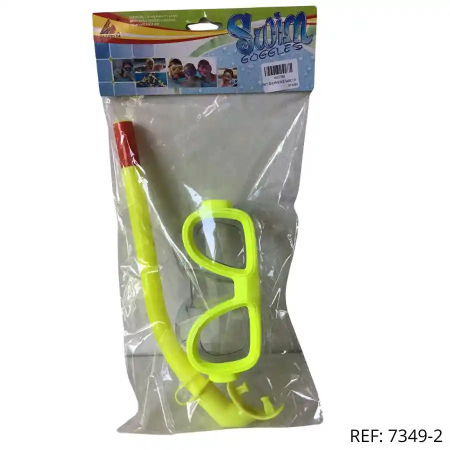 Set de snorkel y gafas de natación amarillo neón, ideal para explorar el agua y vivir aventuras acuáticas inolvidables.