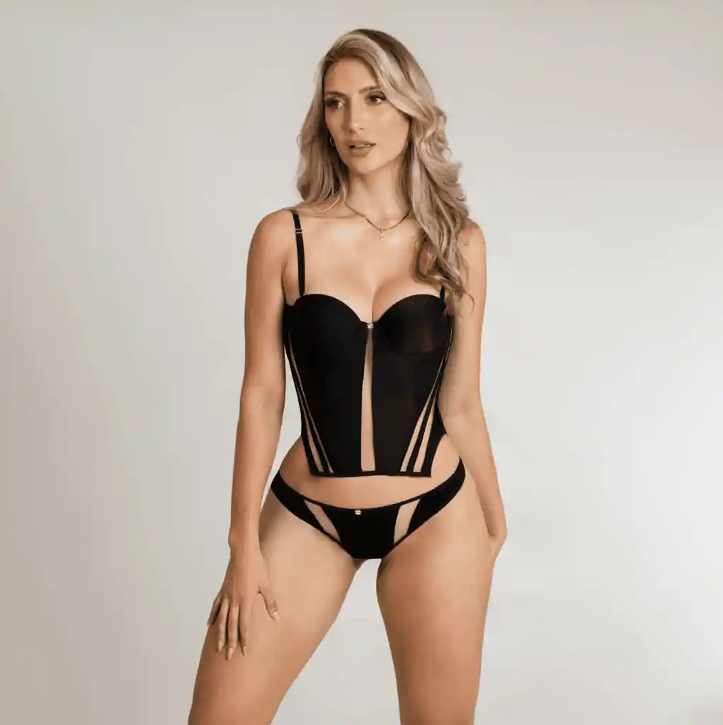 Set Sylvi negro. Incluye corsé Sylvi Talla L y Panty tipo tanga talla L.