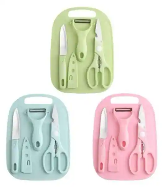 Descripción: Todo lo que necesitas para tus preparaciones en la cocina. Este práctico set de cocina incluye una tabla de picar, cuchillo con funda, pelador y tijera, combinando funcionalidad y diseño para facilitar todas tus tareas culinarias. Características principales: Tabla de picar con ranuras: Diseñada para recoger los jugos de frutas, carnes y vegetales, manteniendo tu cocina limpia y organizada. Cuchillo de acero inoxidable: Con funda protectora para mayor seguridad y durabilidad, ideal para todo tipo de cortes. Pelador ergonómico: Perfecto para pelar frutas y vegetales con facilidad y precisión. Tijera multifuncional: Resistente y versátil, adecuada para cortar carnes, hierbas, paquetes y más. Materiales de alta calidad: Fabricado en ABS duradero y acero inoxidable, asegurando una larga vida útil y resistencia al uso diario. Especificaciones: Material: ABS y acero inoxidable. Incluye: 1 tabla de picar con ranuras para jugos. 1 cuchillo con funda protectora. 1 pelador ergonómico. 1 tijera de cocina multifuncional. Ventajas: Práctico y completo: Todo lo que necesitas en un solo set para realizar cortes y preparaciones rápidas y precisas. Fácil de limpiar: Materiales resistentes y aptos para lavado manual o en lavavajillas. Diseño compacto: Ideal para cocinas pequeñas o como regalo práctico para amantes de la cocina.