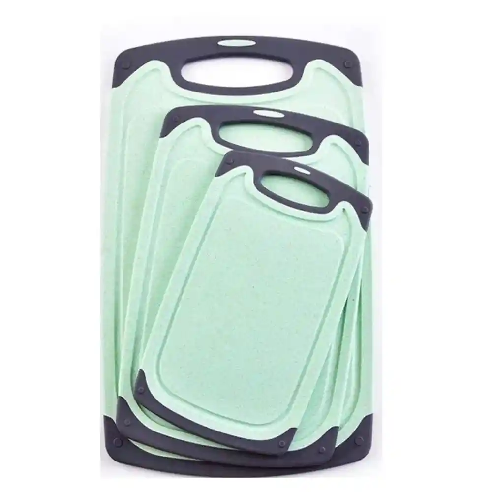 "Tablas para picar y cortar Set x 3 unidades en diferentes tamaños Medidas: Grande: 39x24x1 cm Mediana: 29x19x1 cm Pequeña: 25x15x1cm Hechas en fibra de trigo, material eco friendly, sostenible"