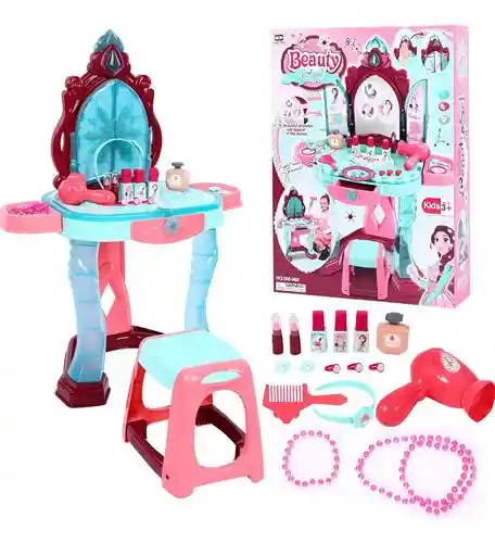 El Tocador Musical Niña Con Luces y Sonido es el complemento perfecto para que las pequeñas de la casa exploren su creatividad y se sumerjan en un mundo de juego imaginativo. Diseñado para niñas de 3 años en adelante, este tocador cuenta con un diseño atractivo y funcional que incluye un taburete cómodo, ideal para que se sientan como verdaderas estrellas. Con una altura de 76 cm, un largo de 34 cm y un ancho de 57 cm, este tocador es perfecto para que las niñas se diviertan mientras se arreglan. Incluye accesorios como un secador, collar, anillos, manilla, peine y diadema, lo que permite a las pequeñas experimentar con diferentes estilos y looks. Las luces y sonidos integrados añaden un toque mágico a la experiencia, haciendo que cada sesión de juego sea única y emocionante. El material plástico garantiza durabilidad y seguridad, permitiendo que las niñas jueguen sin preocupaciones. Este tocador no solo fomenta la creatividad, sino que también ayuda a desarrollar habilidades motoras y la coordinación. Es una excelente opción para regalar en cumpleaños o cualquier ocasión especial, brindando horas de diversión y entretenimiento.
