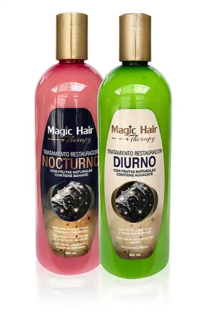 Mezclamos lo mejor de la naturaleza (frutas reales) con componentes con estudios científicos que garantizan el crecimiento de tu cabello. Haciendo que este producto sea ideal para el crecimiento del cabello. contiene keratina hidrolizada. yogurt. ¡aceite de argán y una variedad de ingredientes naturales que fortalecerán tu hebra capilar.Nocturno: Tiene componentes activos como el minoxidil que contiene estudios científicos que garantizan el crecimiento del cabello. contiene banano. la naranja. la miel. vitamina e. biotina y muchos componentes más que le brindaran a tu cabello una reparación total de la hebra capilar