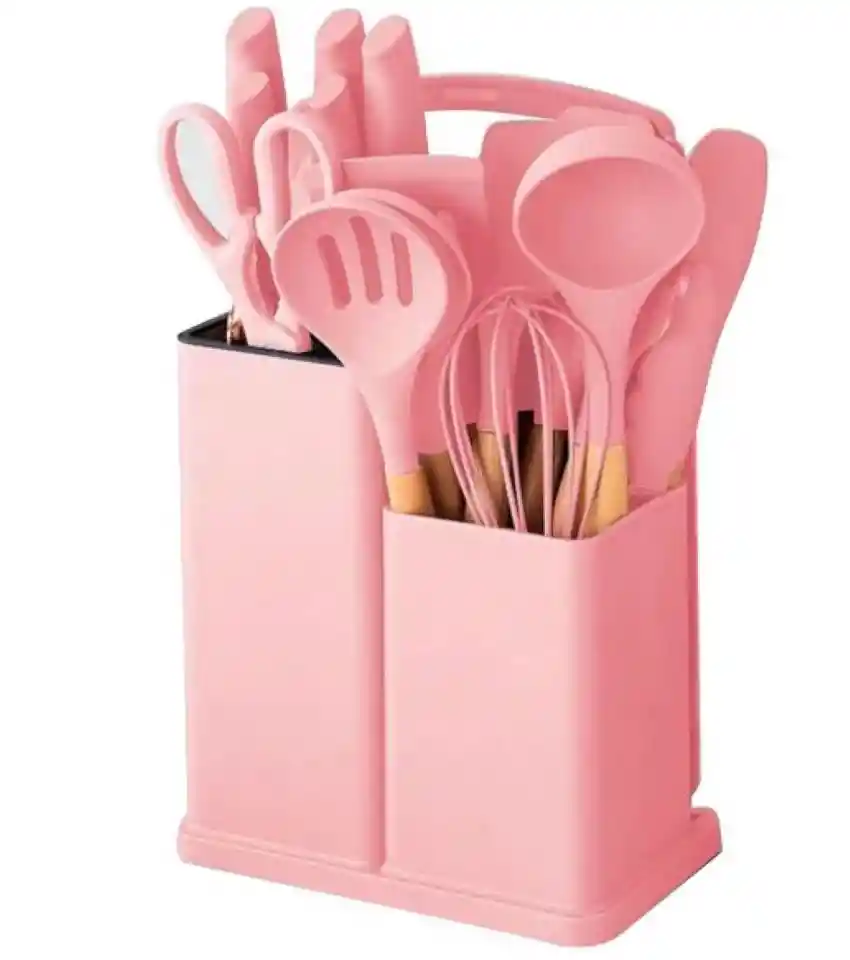 Set 19 Piezas Utensilios De Cocina Silicona Resistentes Al Calor. CARACTERISTICAS: * Set de Utensilios de Cocina de 19 Piezas Con Cuchillos * Super Resistente al Calor. * Están hechos de silicona de alta calidad y madera, lo que garantiza su durabilidad y resistencia. * Los utensilios vienen con un agujero integrado para colgar. * Colores atractivos y Practico estuche para organizar. * Apto para Lavavajillas. * Incluye una amplia variedad de utensilios: - 5 Cuchillos: Cuchillo de chef de 8 pulgadas, Cuchillo rebanador de 8 pulgadas, Cuchillo de pan de 8 pulgadas, Cuchillo utilitario de 5 pulgadas, Cuchillo de pelar de 3.5 pulgadas. - Juego de utensilios de 14 piezas : 1 cuchara para servir. 1 cuchara ranurada. 1 x Turner. 1 espátula ranurada. 1 cucharón de sopa profunda. 1 servidor de pasta. 1 espátula flexible. 1 cepillo para untar 1 batidor. 1 x Pinzas 1 espátula redonda. 1 tabla de cortar. 1 tijera. 1 x soporte DESCRIPCION: - Juego de utensilios de cocina y cuchillos de 19 piezas con bloque, con 9 utensilios de cocina de silicona, 5 piezas de acero inoxidable afilado, cuchillos de chef, tijeras, pinzas para batir y tabla de cortar. - SILICONA SALUDABLE DE GRADO ALIMENTARIO: Cada utensilio está hecho de silicona de grado alimenticio, sin BPA, muy seguro y saludable para usar en cualquier tipo de alimento. El material de silicona duradero garantiza un uso diario durante mucho tiempo sin desgastarse. - RESISTENTE AL CALOR QUE NO SE FUERE: Los utensilios de cocina de silicona pueden soportar temperaturas altas. Incluso si se usan en un ambiente de alta temperatura para freír, no debe preocuparse de que se derrita. Silicona completa añadida a la suavidad, ya no te preocupes por que los alimentos se peguen a tus utensilios de cocina. El cabezal de silicona suave protege sus sartenes y mantiene la superficie de los utensilios de cocina sin rayones ni abolladuras. - Este juego de utensilios de cocina de silicona de calidad es fácil de lavar, simplemente límpielo con agua caliente. La mejor manera de limpiar estos utensilios de cocina de silicona es enjuagarlos suavemente con agua tibia o simplemente colocarlos en el lavavajillas. - Tiene 5 cuchillos: 1-Cuchillo de chef de 8 pulgadas: se puede utilizar para tus tareas diarias de cocina, cortar, rebanar, cortar en cubitos y picar todo tipo de carne, verduras, frutas y pan, es adecuado para todas las cocinas. 2-Cuchillo rebanador de 8 pulgadas: la hoja larga y estrecha corta carne, aves de corral y pescado ahumado o cocido más limpiamente. 3-Cuchillo de pan de 8 pulgadas: los bordes afilados agarran y cortan sin esfuerzo incluso el pan más duro, proporcionando un corte suave y limpio para un fácil acceso a la rebanada perfecta de pan. 4-Cuchillo utilitario de 5 pulgadas: corta alimentos con texturas duras y suaves como sándwiches, verduras o pan artesanal crujiente sin aplastar o magullar el interior más suave. 5-Cuchillo de pelar de 3.5 pulgadas: este cuchillo de chef multiusos se puede utilizar para picar verduras, frutas y algunos ingredientes de cocina. Juego de utensilios de cocina de silicona antiadherente de 11 piezas 1 cuchara para servir. 1 cuchara ranurada. 1 x Turner. 1 espátula ranurada. 1 cucharón de sopa profunda. 1 servidor de pasta. 1 espátula flexible. 1 cepillo para untar 1 batidor. 1 x Pinzas 1 espátula redonda. Otras 3 piezas son: 1 tabla de cortar. 1 tijera. 1 x soporte. ESPECIFICACIONES: * Material: Silicona + Madera * Color: Negro, rosa, gris, verde * Dimensiones: * Embalaje: 19 piezas.