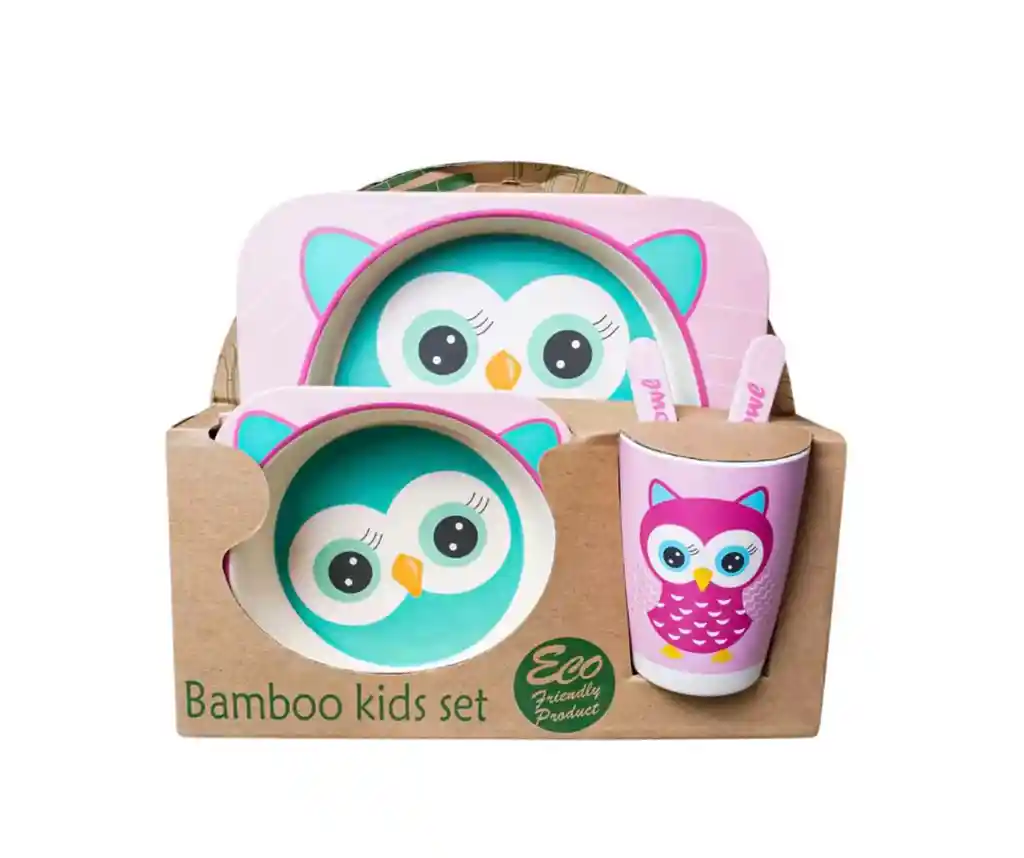 Set de vajilla infantil en bambú con diseño de búho, compuesto por 5 piezas, ideal para acompañar la alimentación diaria de los niños de forma práctica y funcional. Su diseño atractivo hace que la hora de comer sea más agradable y motivadora. Incluye los elementos necesarios para una comida completa, ayudando a fomentar la autonomía y el aprendizaje de hábitos alimenticios desde temprana edad. Las piezas están adaptadas para un uso cómodo por parte de los niños. Fabricado en material de bambú, es ligero y resistente, adecuado para el uso frecuente en el hogar. Su superficie facilita la limpieza y el mantenimiento diario. Características principales: Set de 5 piezas para alimentación infantil Diseño de búho atractivo para niños Material de bambú ligero y resistente Fácil de usar y limpiar Favorece la autonomía y hábitos alimenticios Producto ideal para acompañar las comidas de los niños de forma práctica y funcional.