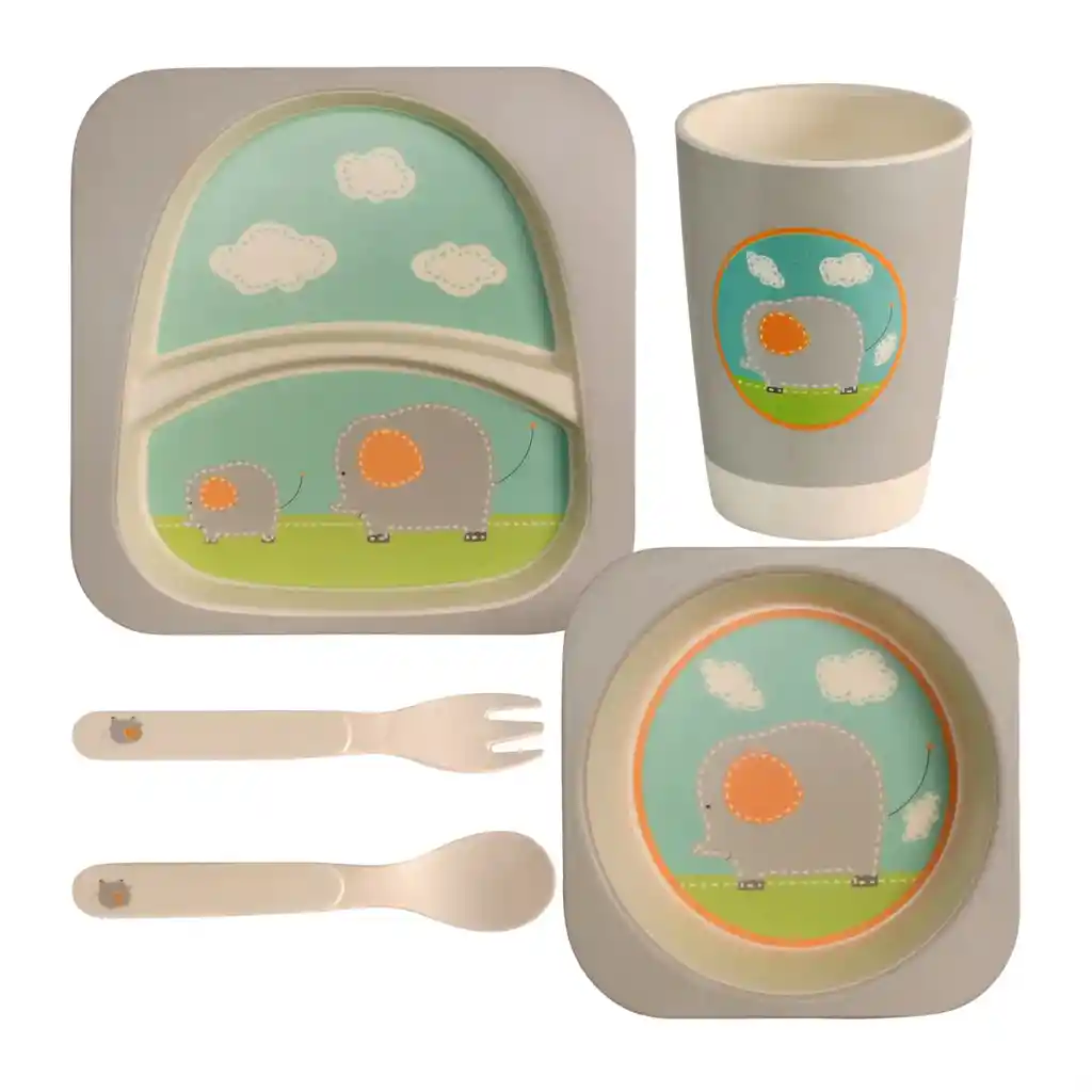 Set de vajilla infantil en bambú con diseño de elefante, compuesto por 5 piezas, ideal para acompañar la alimentación diaria de los niños de forma práctica y funcional. Su diseño atractivo hace que la hora de comer sea más agradable y motivadora. Incluye los elementos necesarios para una comida completa, ayudando a fomentar la autonomía y el aprendizaje de hábitos alimenticios desde temprana edad. Las piezas están diseñadas para un uso cómodo y adaptado a manos pequeñas. Fabricado en material de bambú, es ligero y resistente, adecuado para el uso frecuente en el hogar. Su superficie facilita la limpieza y el mantenimiento diario. Características principales: Set de 5 piezas para alimentación infantil Diseño de elefante atractivo para niños Material de bambú ligero y resistente Fácil de usar y limpiar Favorece la autonomía y hábitos alimenticios Producto ideal para acompañar las comidas de los niños de forma práctica y funcional.