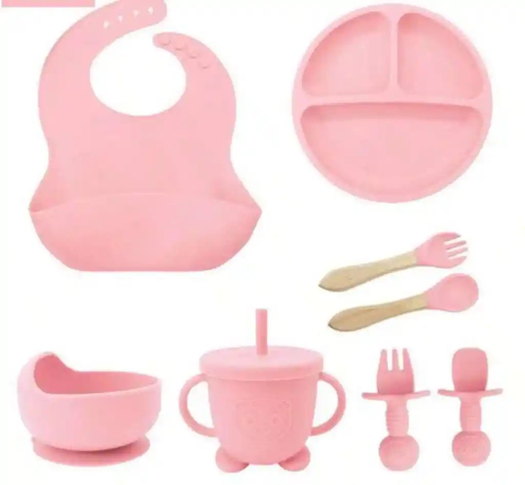 Set de Alimentación ideal para Bebés x8 Piezas NIÑA. es libre de BPA, seguro su uso, y es antideslizante. cumple para las diferentes necesidades de comida de bebé. Las piezas incluidas son las que salen en la foto. Materiales: Silicona.