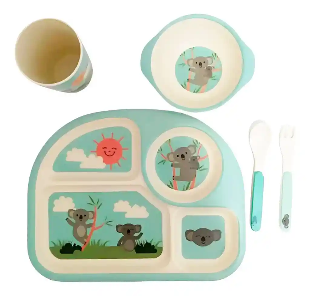 Este colorido y funcional set de vajilla infantil, fabricado en fibra de bambú natural y libre de BPA y PVC, es ideal para fomentar la independencia de los niños en la alimentación. Su diseño con asas de fácil agarre, platos divididos en divertidas formas de figuras y bordes profundos facilita la recogida de alimentos, haciendo que la hora de comer sea más divertida y sin derrames. Ligero pero duradero, resiste caídas sin agrietarse y es apto para lavavajillas, asegurando una limpieza sencilla. Perfecto para bebés y niños pequeños, es un regalo ideal para nuevos padres que buscan una opción segura y ecológica. Ficha Técnica: Dimensiones del empaque: 29 cm x 22.5 cm x 6 cm Material: Fibra de Bambú Cantidad de Piezas: 5 ** _Para defectos de fábrica o retractos: \_Por favor revise el producto apenas lo reciba y antes de usarlo. No aplican ley de retracto o defectos de fábrica luego de usar el producto. Se manejan máximo 5 días para reportar defectos de fábrica (por ejemplo, producto funciona mal, piezas faltantes, rotas, etc). Para hacer efectiva la devolución el producto debe devolverse con el empaque original, el cual debe estar en buen estado, incluir todos los documentos y las partes completas y sin daños.