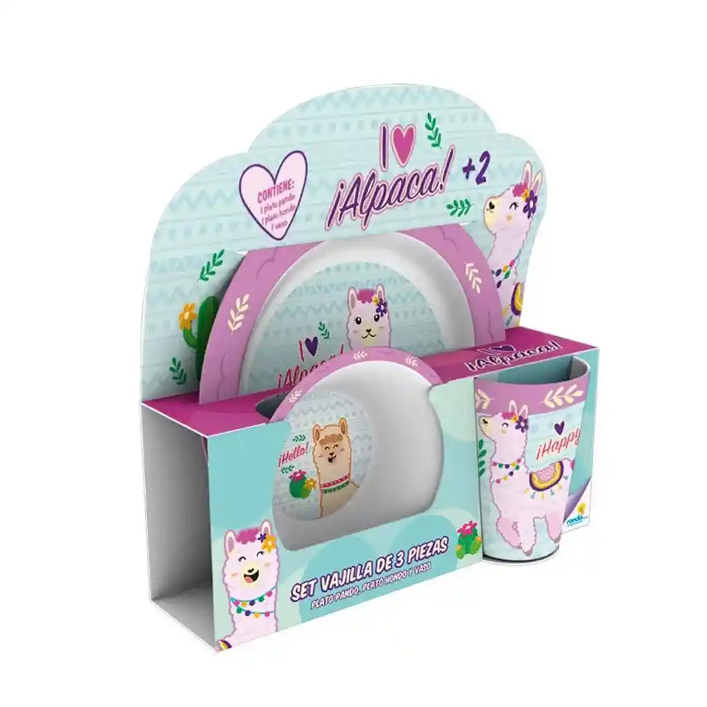 Este fantástico Set de Vajilla está elaborado con melamina e incluye plato pando, plato hondo y vaso. Es un producto completamente práctico, pues no es tóxico y es ideal para máquina lavaplatos. Cuenta con un lindo diseño de llama que seguro le encantara a tu pequeña. ¡No esperes más y anímate a llevarlo ahora! Recomendado para niñas mayores de 2 años. Este fantástico Set de Vajilla está elaborado con melamina e incluye plato pando, plato hondo y vaso. Set Vajilla de 3 Piezas Llama. Incluye: Plato pando, plato hondo y vaso . Desarrolla la capacidad de asociación, la motricidad fina y la competencia. Material: Melamina. Hecho en Colombia. Recomendado para niñas mayores de 2 años.