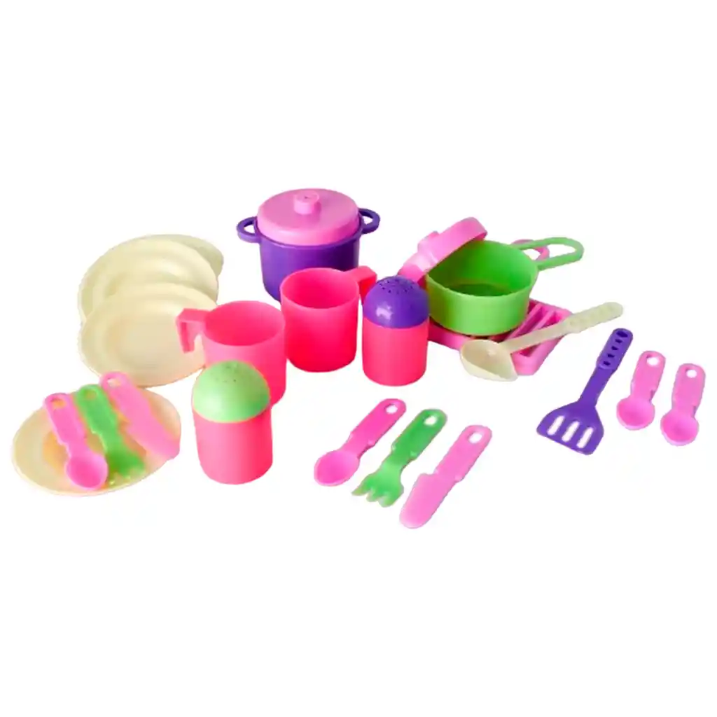 4 platos 4 saleros 4 cucharas 2 tapas 2 posillos 2 cuchillos 2 tenedores 2 cucharones 1 parrilla 1 olla 1 sartén Características destacadas: Los colores pueden variar en cada producto y en cada pieza (fucsia, rosado, morado, amarillo, verde menta, celeste) Edad recomendada: 3 años en adelante Reseña del producto: Kit vamos de picnic, cuenta con todos los accesorios necesarios para un día de diversión en el parque. Además, puedes usarlos para un extraordinario juego de roll de chef y cocina en cualquier lugar y espacio. 1. Al recibir el producto verifique el estado del mismo, si evidencia que se encuentra fracturado, rayado, sucio, deteriorado, incompleto o presenta fallas en su funcionamiento comuníquese inmediatamente con nosotros para dar solución al problema. Importante: Mientras damos solución por favor no haga uso del producto hasta tener una respuesta. 2. La garantía del producto solo es válida por defectos de fábrica no por el uso inadecuado del mismo. Garantía del vendedor: 1 meses