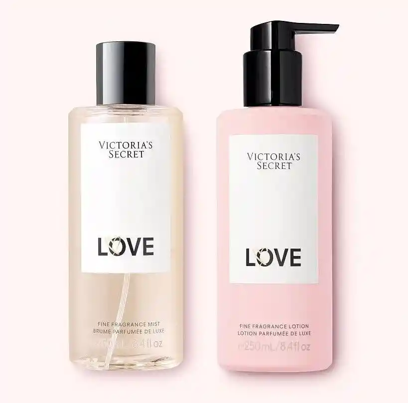 SET DUO LOVE VICTORIA´S SECRET, 100% ORIGINAL. Incluye una bruma de perfume 250 ml + Loción corporal de la misma fragancia + Empaque de regalo. Flota en una nube de tu fragancia favorita. Glamorosa y lujosa, Very Sexy es una poderosa mezcla de calidez sensual y frutas oscuras. Niebla encendida, para irnos. Tipo de fragancia: Cálida Notas: orquídea vainilla, clementina bañada por el sol, mora silvestre Mist es nuestra versión más ligera de la fragancia.