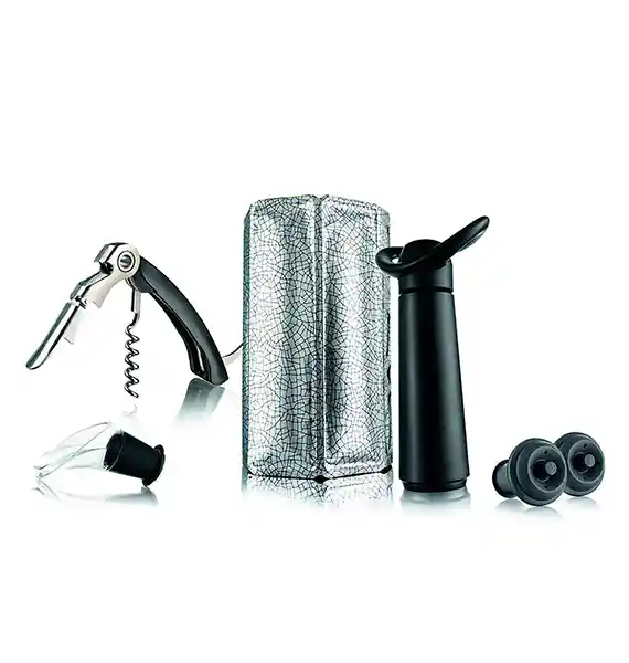Set Vino Essentials Bomba Vino 2Tapon Vacio 1Ver-Set Esencial para Vino. Prohíbase el expendio de bebidas embriagantes a menores de edad. Ley 124 1994.. Prohíbase el expendio de bebidas embriagantes a menores de edad. Ley 124 1994.. El exceso de alcohol es perjudicial para la salud. Ley 30 de 1986.
