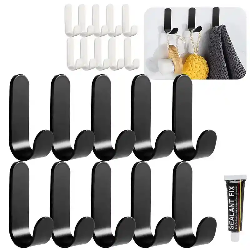 Material de aluminio de alta calidad, textura delicada, gruesa y duradera, se puede utilizar durante mucho tiempo Fácil instalación: Sin necesidad de perforación y taladros, solo necesita pegarlo donde lo necesite con el adhesivo incluido. Excelente diseño: las esquinas de los ganchos están redondeadas para proteger sus manos de lesiones. Buena capacidad de carga: el gancho está firmemente sujeto, no se cae fácilmente y tiene una gran capacidad de carga para satisfacer sus necesidades diarias. Se puede usar para el almacenamiento en la cocina, el almacenamiento en la puerta trasera, el almacenamiento en el baño y mas. Caracteristicas: Material: Acero Inoxidable Color: negro/blanco/gris. Tamaño: aprox. 7,5 x 1,8 x 3,5 cm. Cantidad: 10 Unidades El paquete incluye: 10* Ganchos Percheros 1* Adhesivo
