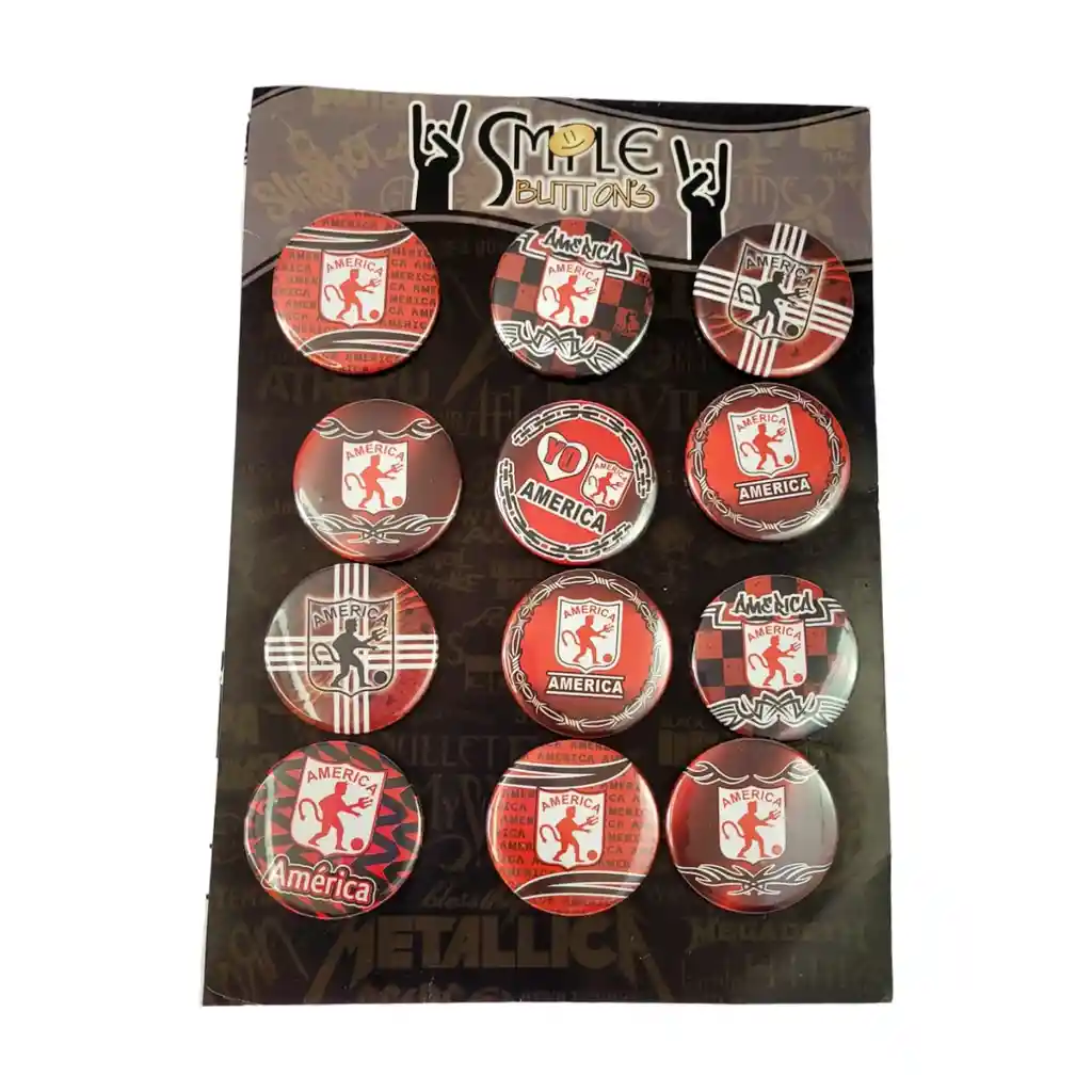 Botones Publicitarios Coleccionables Equipo de Fútbol América. Incluye: 12 botones de tu equipo favorito. Diámetro: 4cm Producto Garantizado Somos Andicell Soluciones