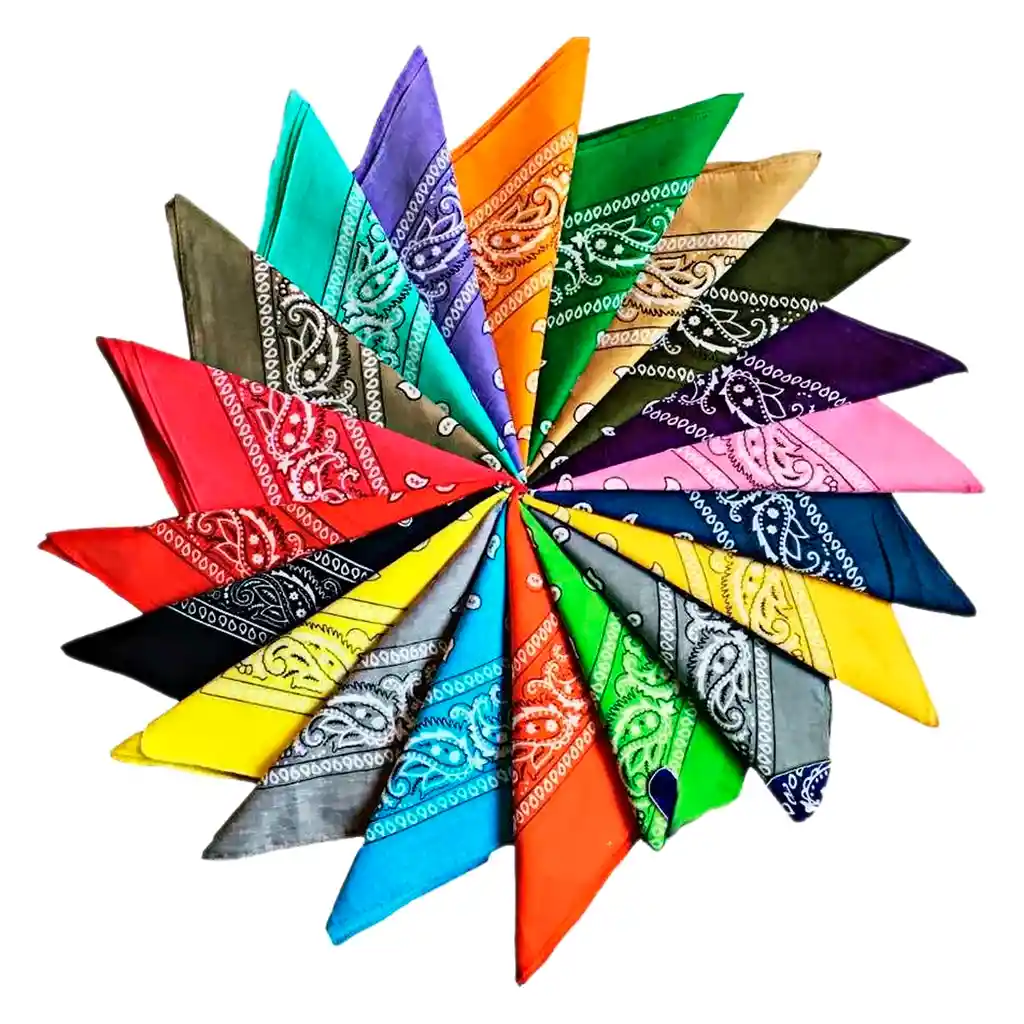 DESCRIPCIÓN: Colores Disponible: Negro, Azul, Rojo, Violeta, Marrón, Verde, Verde militar, Gris claro, Amarillo, Azul oscuro, Salmon, Rosa, Naranja, fucsia, Vinotinto, Verde claro, Gris oscuro. Luego de la compra confírmanos los colores que deseas. 12 unidades que puedes escoger de diferente diseño Pañoleta Bandana, Accesorio de Moda para hacer lucir un Outfit Sensacional.