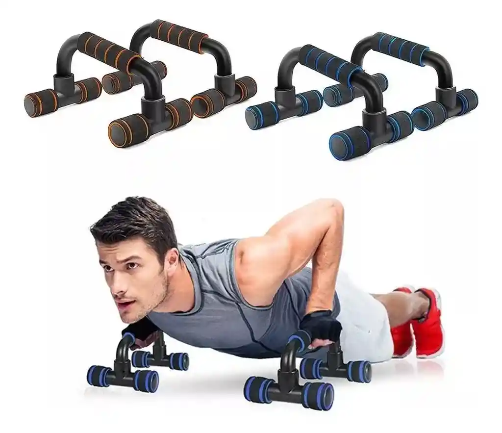 Función: Están diseñados para realizar flexiones de brazos, lo que ayuda a ejercitar el pecho, los brazos, los hombros y los músculos abdominales. Permiten un mayor rango de movimiento durante el ejercicio, lo que puede aumentar la efectividad de las flexiones. Diseño: Tienen un diseño ergonómico que ayuda a reducir la tensión en las muñecas al mantenerlas en una posición neutra. Material: Están hechos de PVC de alto impacto y cuentan con bases antideslizantes para garantizar estabilidad y seguridad durante el entrenamiento. Portabilidad: Son compactos y ligeros, lo que facilita su almacenamiento y transporte.