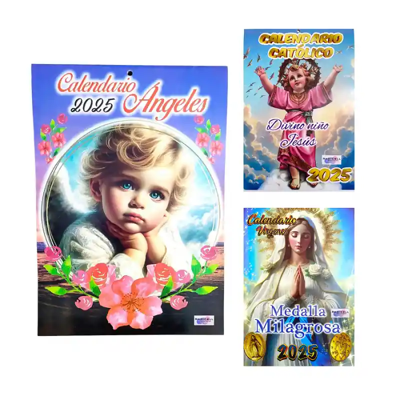 Calendario Católico 2025 Incluye: 1 set x 3 unidades Diseño: Ángeles, Vírgenes, Católico Formato: Vertical Tipo de calendario: Pared Medidas: 34 cm x 24 cm - Este calendario es un recordatorio diario de la importancia de la fe en tu vida. Te inspira y ayuda a mantener tus creencias en el centro de tu rutina, además de organizar eventos religiosos y días santos clave. - Ideal para colgar en la pared de tu oficina, estudio u hogar. ---------------------------------------------------------------------------------------------------- NOTA: En Andicell Soluciones, emitimos facturación electrónica para todas tus compras.