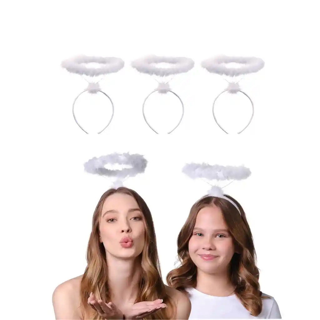Diadema Ángel con Aureola de Plumas Disfraz Halloween Incluye: 3 diademas Color: Blanco Material: Plumas sintéticas, banda flexible y cómoda Talla: Única Perfectas para: - Disfraces de ángel o hada - Sesiones de fotos temáticas - Obras escolares y fiestas de disfraces Combínalas con un vestido blanco o negro, alas y maquillaje acorde para crear un personaje celestial o misterioso.
