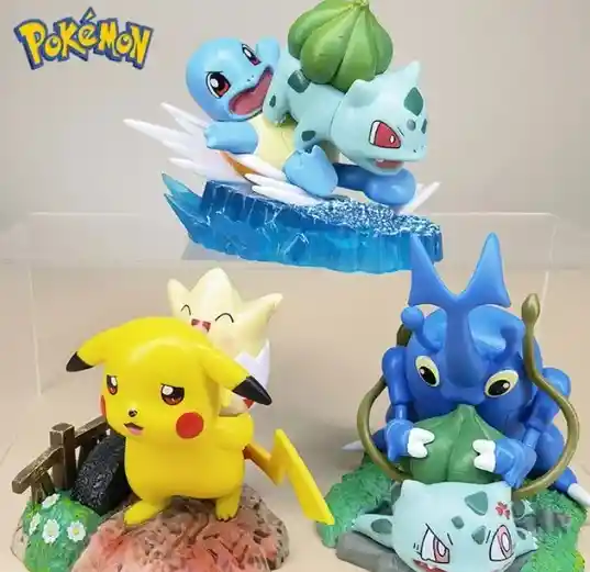 SET X 3 MUÑECOS animados de Pokémon, decoración de escena grande, FIGURAS COLECCIONABLES