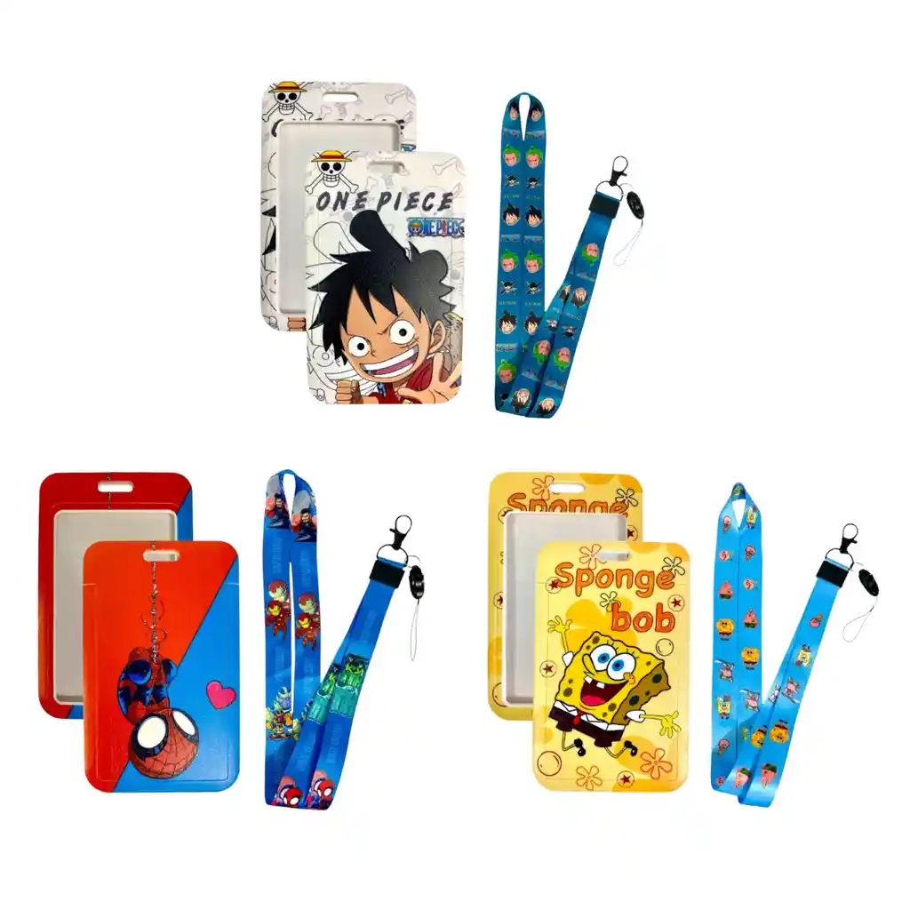 Porta Carnet Funda Para Tarjetas Credenciales Incluye: 3 unidades - Porta carnet (11 cm x 6.8 cm) - Cinta de poliéster suave y resistente (44.2 cm) Diseño: Personajes Animados (Surtido) Características: - Diseño adorable y colorido, perfecto para estudiantes, trabajadores y personas que buscan un accesorio funcional y con estilo. - Fabricado con materiales resistentes, protege tus tarjetas de rayones y desgaste. - Ideal para carnets, credenciales, identificaciones y tarjetas de transporte o acceso.