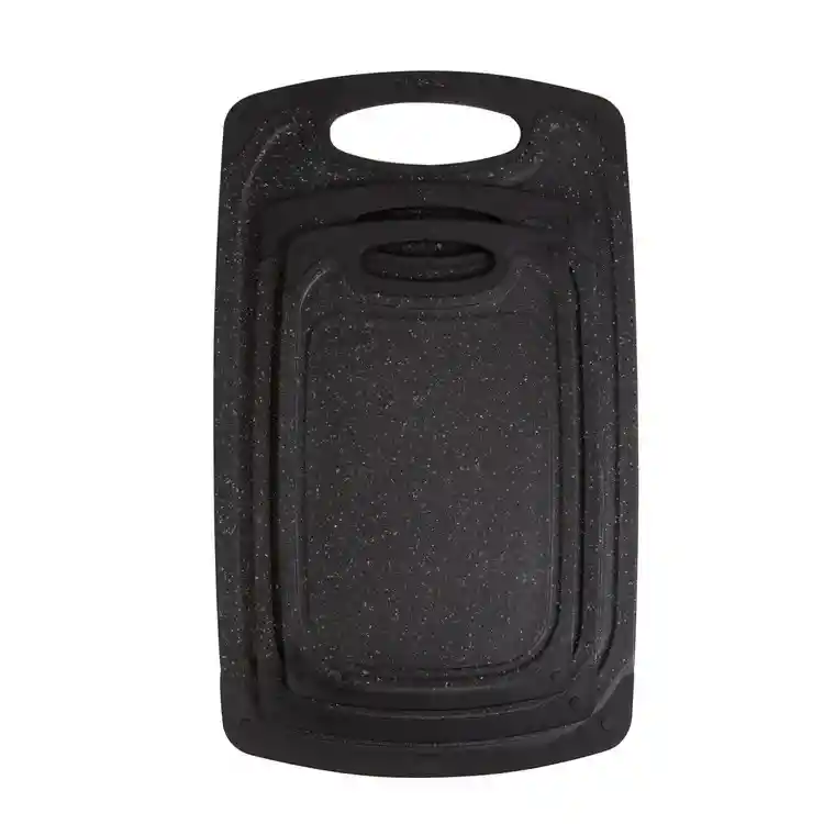 El Set x 3 Tablas de Picar FREE HOME Antideslizantes Negras es el complemento perfecto para tu cocina. Material: Fabricadas en Polietileno un material más resistente y duradero. //Diseño: Tabla de superficie lisa, cuentan con asa de fácil agarre y plástico en los bordes evitando así que se deslice, se adhiera a la base de soporte para mayor seguridad. //Uso: Es perfecta para realizar cortes en alimentos, frutas o verduras, además permite proteger las mesas o mesones y prolongando el tiempo de duración del filo de los cuchillos. ¡Encuéntrala aquí!