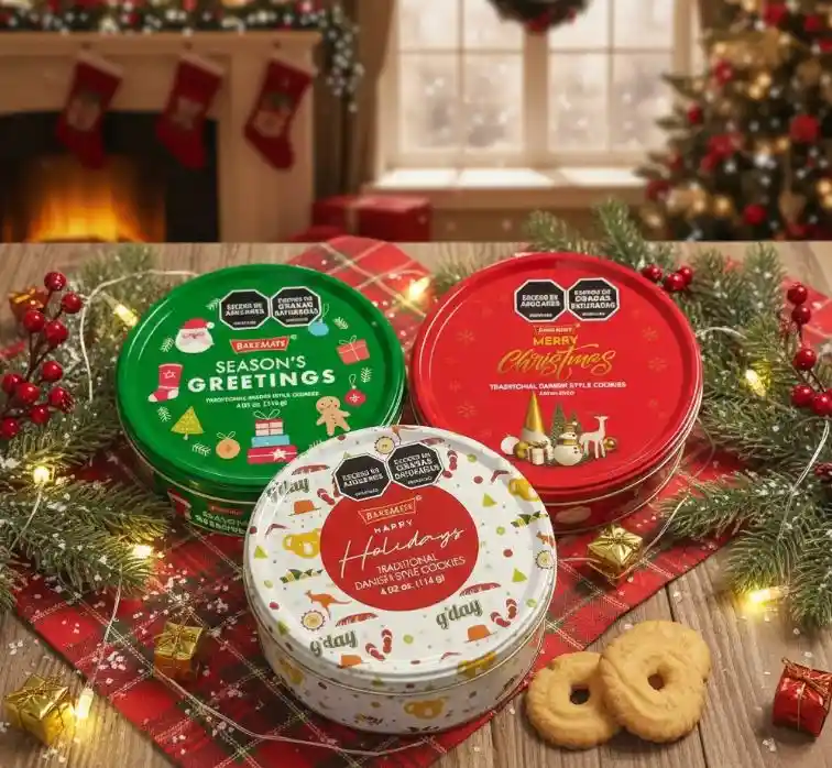 Descubre el Set x 3 Tarros Metálicos de Galletas de Mantequilla de BakeMate, una opción perfecta para disfrutar en la temporada navideña. Estas galletas de mantequilla estilo danés son ideales para compartir con familiares y amigos, ofreciendo un sabor tradicional que evoca momentos especiales.