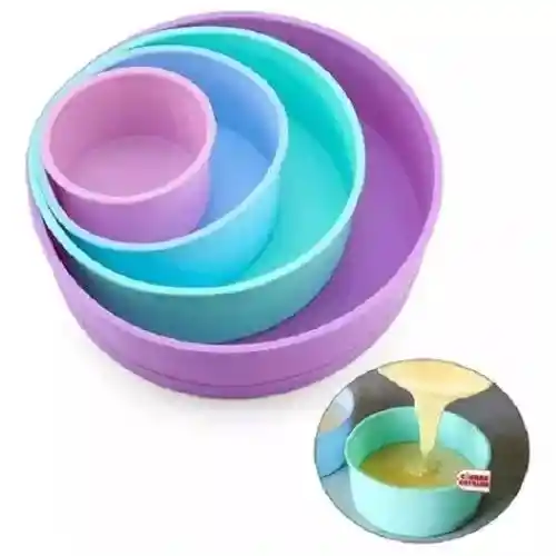 Descripción para hornear en horno convencional, air fryer o freidora de aire o microondas. Color disponible: SURTIDOS Medidas de los 4 moldes 25 cm x 19 cm x 16 cm x 10 cm Material: Silicona para uso alimenticio, sin recubrimientos químicos, sin BPA, antiadherente, fácil de limpiar, apto para lavavajillas, apto para microondas, apto para congelador, resiste temperaturas desde -40 grados C hasta 230 grados C.