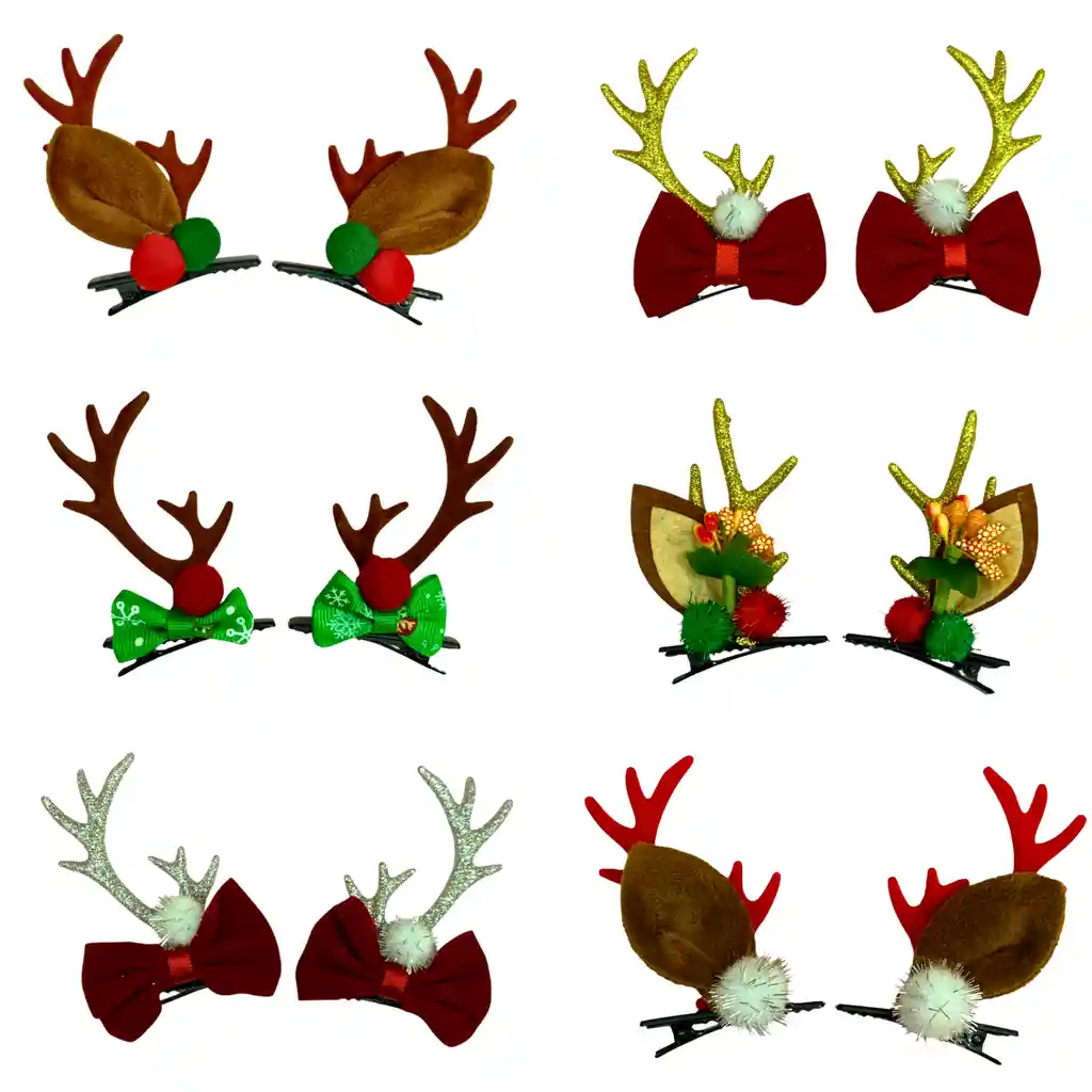 Set de Pinzas para el Cabello Navideñas Incluye: 6 pares de pinzas navideñas Características: - Diseños adorables y llamativos que complementan cualquier look decembrino. - Materiales suaves tipo felpa, glitter y pompón decorativo según el diseño. Perfectas para: - Novenas, fiestas, reuniones y eventos escolares. - Sesiones de fotos navideñas. - Regalos, intercambios o detalles temáticos.
