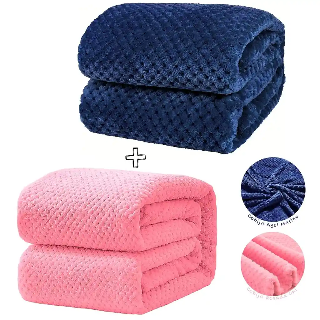 Nuestras cobijas térmica te harán sentir como en una nube de algodón. Te mantendrá calientito, debido a su material con tecnología de calor liviano. Especificaciones: - Tipo: Cobijas y mantas - Colores: Azul oscuro + Rosa chicle - Elaborado en poliéster. - Suave al tacto. - Cama Doble - Marca: Cobijate Recomendaciones: * Lavar antes de su primer uso. * Lavado a temperatura fría. * Lavado a máquina ciclo delicado. * No blanquear con cloro Empaque: Cobijas dobladas en rollito y envueltas con papel kraff y/o bolsa. ¡Cobijate: Abrazos que te arropan!
