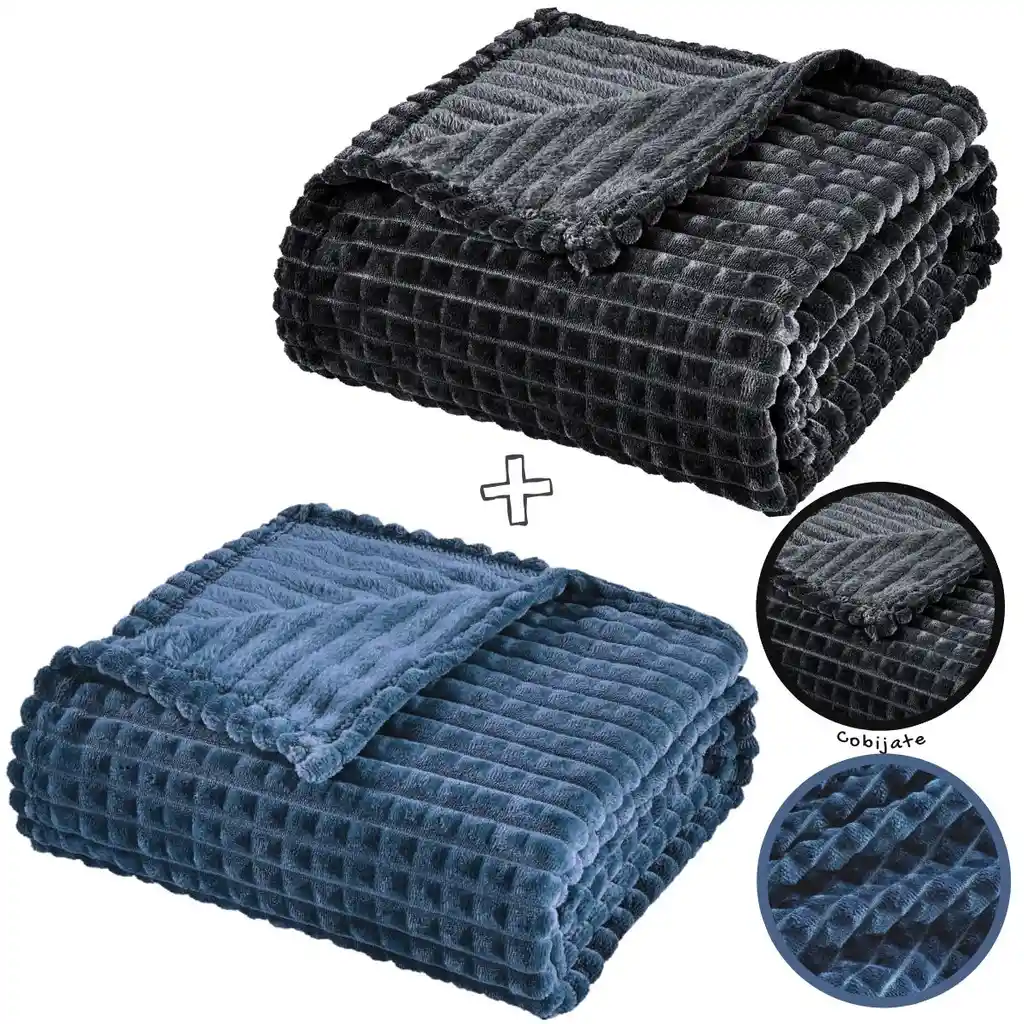 Nuestras cobijas térmicas son una maravilla en épocas de frío. Te mantendrá calientito, te harán sentir como en una nube de algodón, debido a su material con tecnología de calor liviano. Especificaciones: - Tipo: Cobija y manta - Color: Negra y Azul Pet - Set x2 unidades - Elaborado en poliéster. - Suave al tacto. - Cama Doble - Marca: Cobijate Recomendaciones: * Lavar antes de su primer uso. * Lavado a temperatura fría. * Lavado a máquina ciclo delicado. * No blanquear con cloro Empaque: Cobijas dobladas en rollito y envueltas con papel kraff o bolsa. ¡Cobijate: Abrazos que te arropan!