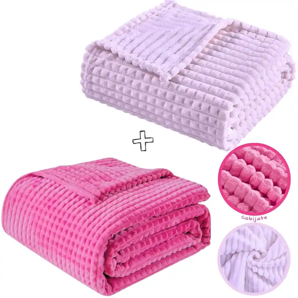 Nuestras cobijas térmicas son una maravilla en épocas de frío. Te mantendrá calientito, te harán sentir como en una nube de algodón, debido a su material con tecnología de calor liviano. Especificaciones: - Tipo: Cobija y manta - Color: Fucsia y Lila - Set x2 unidades - Elaborado en poliéster. - Suave al tacto. - Cama Doble - Marca: Cobijate Recomendaciones: * Lavar antes de su primer uso. * Lavado a temperatura fría. * Lavado a máquina ciclo delicado. * No blanquear con cloro Empaque: Cobijas dobladas en rollito y envueltas con papel kraff o bolsa. ¡Cobijate: Abrazos que te arropan!