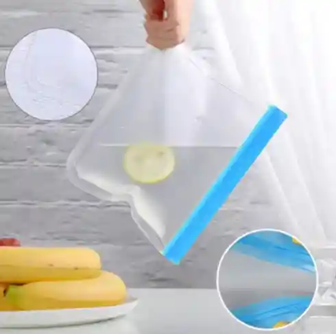 Este set de 3 (s,m,l) bolsas en silicona es ideal para TODO lo que tiene que ver con reducir el uso de bolsas plásticas en tu casa, desde la cocina hasta el baño, algunos usos son: Guardar la lonchera, tus snacks, frutas y vegetales preferidos, manteniéndolos frescos por más tiempo. Ideales para congelar carne, pollo, pescado, frutas y verduras Úsalas en viajes, picnics y siempre que salgas de casa deberías llevarlas contigo. Perfectas para guardar maquillaje, joyas y organizar tus productos de aseo de viaje. Ventajas: Son elaboradas en material ecológico PEVA, no tóxico, seguro para almacenar alimentos, material duradero de alta calidad. Libres de BPA. Cuentan con sello hermético anti-derrame para garantizar impermeabilidad e higiene. A prueba de fugas y fácil de sellar Aptas para congelar y refrigerar. Medidas: S:22cm x11cm, M:22cm x 17cm, L:27cm x 18 cm El set incluye una bolsa de cada tamaño. Cuidados: No Aptas para altas temperaturas, no usar en Microondas ni maquina lavavajillas. Lavar a mano con agua fría y esponja suave. Dejar secar al aire libre boca abajo usando un vaso, taza o botella. Es normal que se manchen con algunos alimentos como la cúrcuma o el curry. Lo más importante! 1 Bolsa de Silicona reutilizable puede reemplazar el uso de hasta 300 bolsas de plástico desechables en un año!!