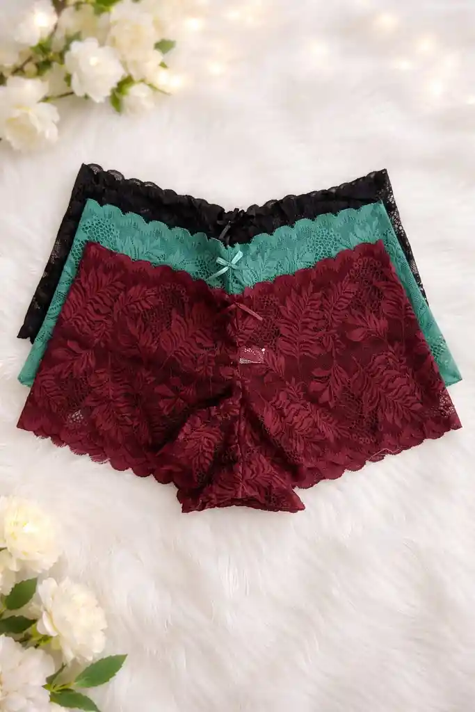 SET X3 Panty Cachetero de Encaje – Soft Lace ✨ Comodidad, elegancia y sensualidad en cada detalle. Este panty cachetero de encaje elástico está diseñado para brindarte una sensación de suavidad y libertad mientras realza tu figura con un estilo femenino y delicado. Su encaje abraza el cuerpo de forma natural, ofreciendo comodidad durante todo el día. TALLA M 💎 ¿Por qué te va a encantar? Encaje de alta calidad: suave, ligero y resistente. Ajuste perfecto: TALLA M Diseño cachetero elegante: brinda mayor cobertura sin perder el toque sensual. Ultracómodo: ideal para usar diariamente o en momentos especiales. Detalle delicado: pequeño lazo que aporta un toque femenino y sofisticado. 👗 ¿Cómo usarlo? Perfecto para usar con jeans, vestidos o ropa ajustada. Su diseño cómodo y suave hace que apenas lo sientas, mientras te permite sentirte segura y elegante en cualquier ocasión. 🛍 Lo que obtienes: Set de panties cacheteros de encaje elástico con diseño elegante. ⚡ Entrega rápida: Recíbelo entre 30 y 50 minutos después de realizar tu compra. 💬 Lo elegiría porque combina comodidad real, calidad y estilo. Es ese tipo de prenda íntima que no solo se ve hermosa, sino que también se siente increíble al usarla. 🔥 Pídelo ahora y recíbelo en minutos. Una prenda íntima diseñada para que te sientas cómoda, segura y elegante todos los días. 💫