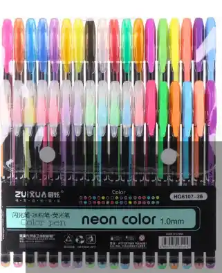Estuche de 36 lapiceros 12unds colores escarchados 12unds colores neón 12unds color pastel. grosor de la punta de 1.0mm