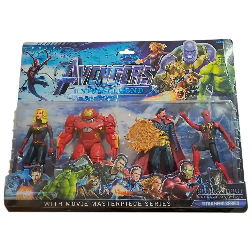 Los superhéroes más poderosos del planeta llegaron para completar tu colección del Universo Cinematográfico de Marvel. Tus personajes favoritos conformando el mejor team. Personajes de la película Avengers: Endgame, set de 4 o 5 figuras de acción Producto Genérico blister x4 muñecos avengers end game con luz Hulk, Capitan America, Black Panter, Spider-man Doctor Strange, Capitana Marvel, Hulk Buster, Spider-man Thor, Groot, Rocket Raccoon, Thanos. Iron Man 14 cm alto 9 cm ancho aproximadamente dependiendo el personaje. Figuras Articulados, Detalles Realistas. Incluyen Accesorios para los distintos personajes. precio por unidad de blister x 4 personajes Garantía del vendedor: 30 días